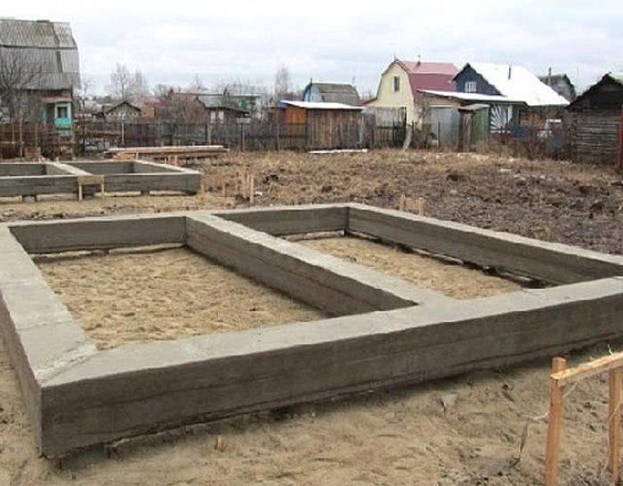 6. Заливают бетон. После того, как он частично наберет прочность, опалубку снимают и обрабатывают готовую ленту гидроизолирующим материалом.