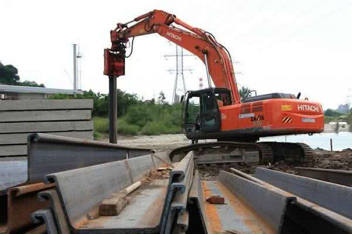 Мы обычно используем для работы системы копров для забивки шпунта Ларсена. Оптимальное оборудование для этой цели – высокочастотные (от 1,5 тысяч оборотов в минуту) вибропогружатели на экскаваторной базе.
