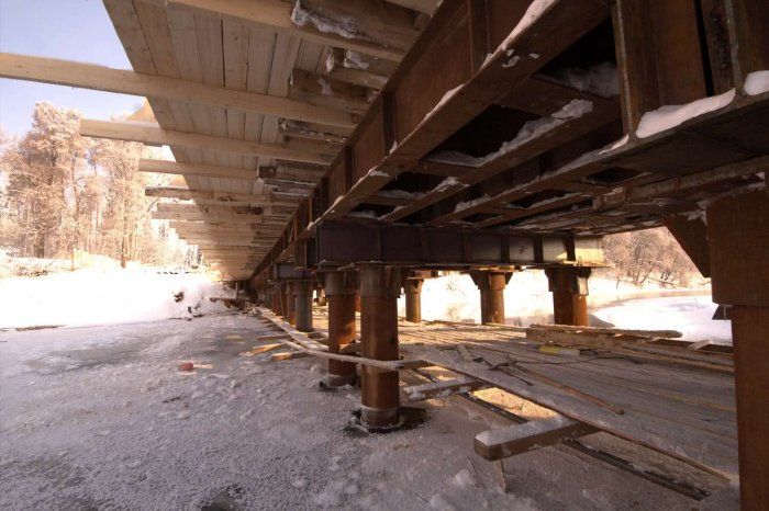 Вибропогружение трубы и шпунтовых свай при строительстве временного моста, выполненное специалистами «АрктикГидроСтрой»