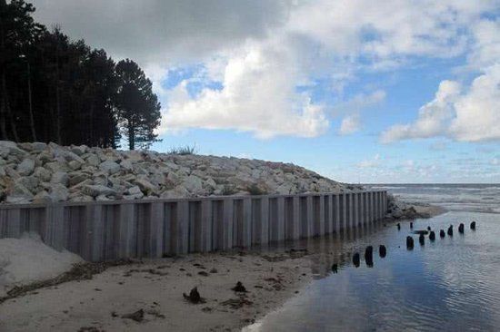 Шпунтом можно «обшить» новую дамбу или усилить старую. Прочные стенки позволяют использовать насыпь в любом качестве, в том числе для сооружения железных и автодорог.
