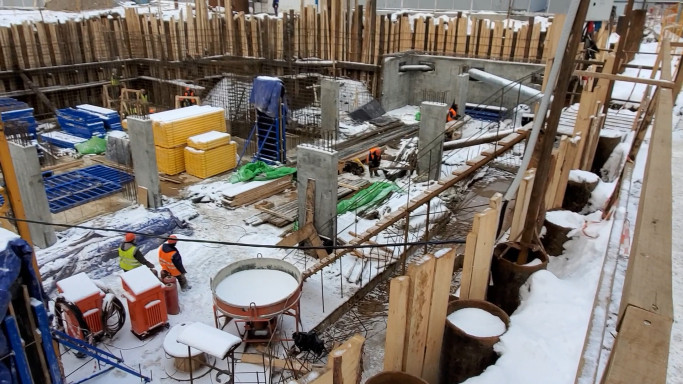 Шпунтовое ограждения котлована при строительстве многоэтажного жилого дома